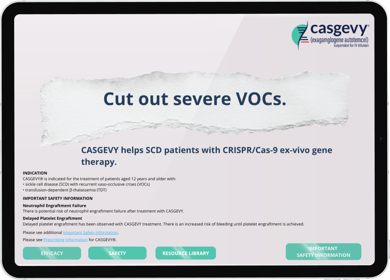 CASGEVY® is the first and only approved ex-vivo autologous gene therapy that uses CRISPR/Cas9 technology to treat sickle cell disease.